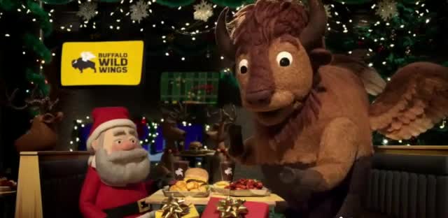 VIDEO Buffalo Wild Wings Pick Six Meal for Two 'Holidays: Hank the Halls' TV commercial 2025 • Buffalo Wild Wings Pick Six Meal for Two TV Spot, 'Holidays: Hank the Halls' The Buffalo Wild Wings buffalo is exchanging gifts with Santa Claus himself. Santa reveals his gift, the Buffalo Wild Wings Pick 6 meal. The buffalo is excited and then asks what else he is getting. When Santa says that's it, the buffalo is upset because the Pick 6 meal is only $19.99 and tries to take his gift back. Products Buffalo Wild Wings Pick 6 Characters Santa Claus Animals Buffaloes- advertisement spot 2025