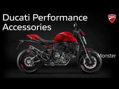 The video focuses on a fully accessorized Ducati Monster, enhanced with official Ducati Performance parts. Based on the page description, the showcase includes: