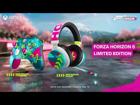 The video is a promotional trailer for the Forza Horizon 6 Limited Edition Xbox controller and gaming headset, created in partnership with GameStop. These accessories are inspired by the Horizon Festival in Japan, which is the setting of Forza Horizon 6.