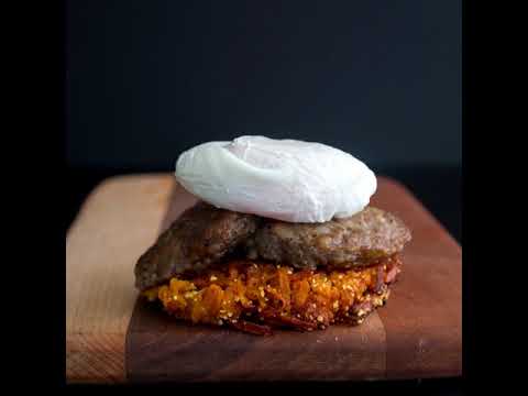 VIDEO JonesDairyFarm Sweet Potato Benedict with Avocado Hollandaise TV commercial 2018 • A Benedict twist, this sweet potato pancake eggs benedict is the perfect solution to a the traditional English muffin eggs benedict. Savory-sweet potato pancakes are topped with poached eggs and ​Jones Sausage, and add avocado hollandaise.- advertisement spot 2018