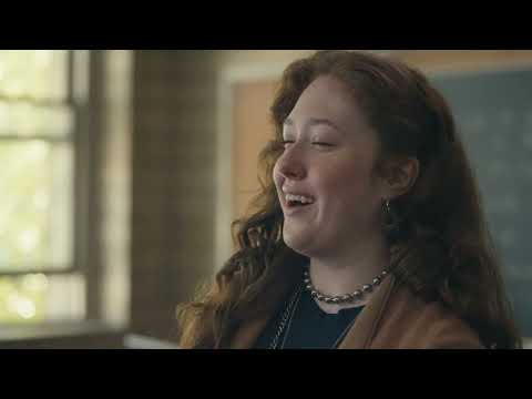 The commercial follows a young woman as she navigates the peak of allergy season during her final exams. The visual narrative transitions from a quiet study session to a high-stakes classroom presentation [00:01].