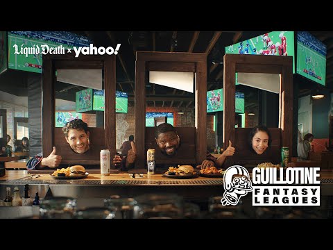 VIDEO Liquid Death Yahoo Fantasy Guillotine Leagues TV commercial 2025 • Liquid Death x Yahoo Fantasy Guillotine Leagues Sign up to start building your league and chopping off heads here: http://yahoo.com/fantasy We figured out the only way to make Yahoo Fantasy Football better: guillotines. Introducing new Yahoo Fantasy Guillotine Leagues, presented by Liquid Death. Each week, the lowest scoring team loses their head (and all of their players) until one team is left standing.- advertisement spot 2025