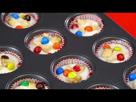 VIDEO m&ms Peanut Butter Minis Banana Cups TV commercial 2023 • With the crowd-pleasing flavors of peanut butter and banana, these simple mini frozen yogurt cups are perfect for a summertime treat and will appeal to both the young and young at heart. Prep Time: 10 minutes Cook Time: 0 minutes Total Time: 10 minutes (+ 1 hour 15 minutes standing time) Makes: 12 servings Ingredients 1 cup low-fat vanilla Greek yogurt 1/2 large banana, finely chopped 1/2 cup M&M’S® Peanut Butter Minis, divided 1/4 cup semisweet chocolate chips, melted Instructions 1. Line 12 mini muffin cups with paper liners. Spoon yogurt evenly into prepared cups. Top with banana and half the M&M’S® Peanut Butter Minis, dividing evenly. Freeze for 1 to 2 hours or until frozen and set. 2. Drizzle with melted chocolate and top with remaining M&M’S. Freeze for 10 to 15 minutes or until chocolate is hardened and set. Serve immediately or freeze in airtight container for up to 1 week. Tip: • Alternatively, use silicon mini muffin cups if preferred. Nutrition Facts Per 1 yogurt cup Calories 90 Fat 3.5g Saturated Fat 2g Cholesterol 5mg Sodium 10mg Carbohydrate 12g Fiber 1g Sugars 10g Protein 2g- advertisement spot 2023