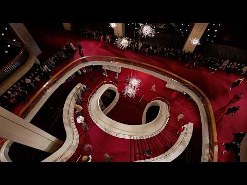 The Venue: The iconic Metropolitan Opera House at Lincoln Center serves as the dramatic stage, its golden interior and red-carpeted grand staircase creating an air of timeless elegance.