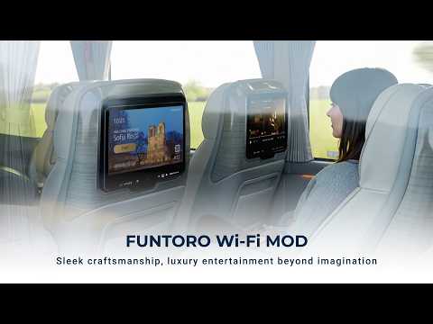 The video showcases the FUNTORO Wi‑Fi MOD Solution, a premium multimedia system designed for buses, shuttles, and luxury transport vehicles. It highlights the system’s intelligent features and user‑friendly interface, demonstrating how it enhances the passenger experience.