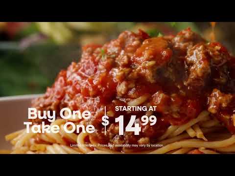 The video promotes Olive Garden’s Buy One, Take One deal, highlighting: