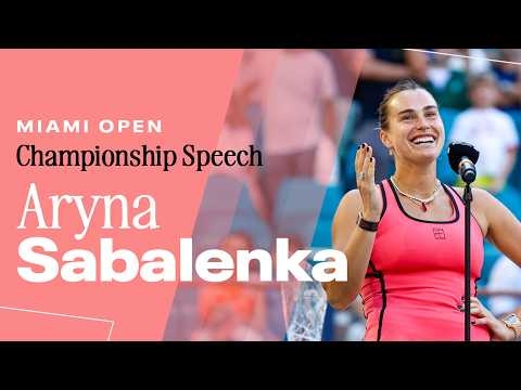 The video features Aryna Sabalenka delivering her official championship speech after winning the 2026 Miami Open. She expresses appreciation for her supporters, reflects on her performance throughout the tournament, and shares her excitement about securing the title. The speech highlights themes such as sportsmanship, resilience, gratitude, and competitive excellence, giving fans a closer look at Sabalenka’s personality and emotional response to her victory.